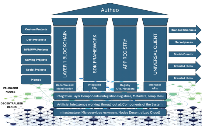Autheo is more than just a Layer-1 blockchain—it is a full-stack Web3 integration system designed to unify decentralized networks, applications, and economies. By combining high-performance blockchain infrastructure, modular architecture, an integration-first framework, and decentralized cloud solutions, Autheo enables projects, protocols, enterprises, and creators to seamlessly build, launch, and scale interconnected digital economies.